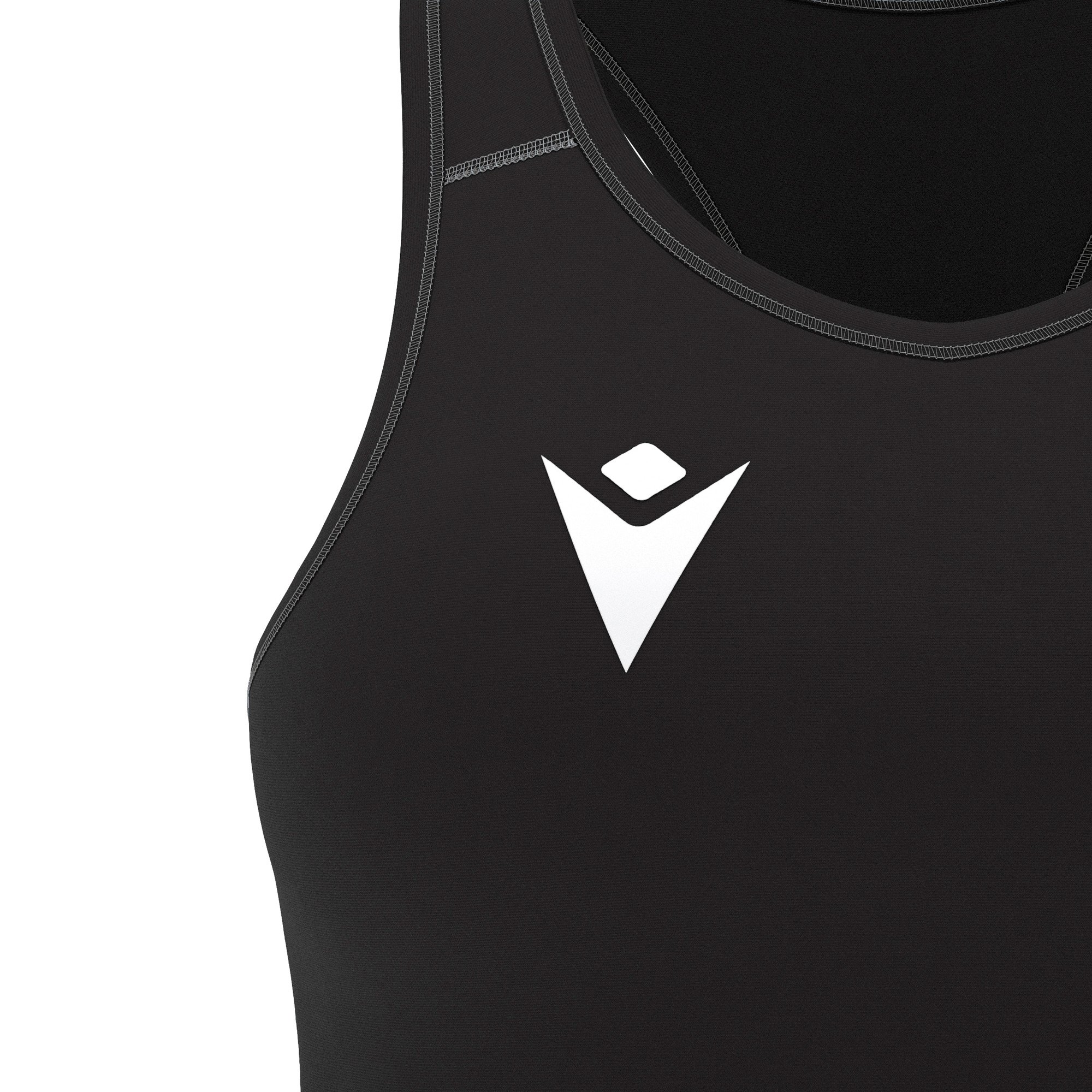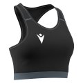 Sports-bh i Bodytex stof. Med flade tone-i-tone sømme med en tone-i-tone synlig elastik. Macron Hero-logoet er trykt på forsiden. Fås i 4 farveversioner.