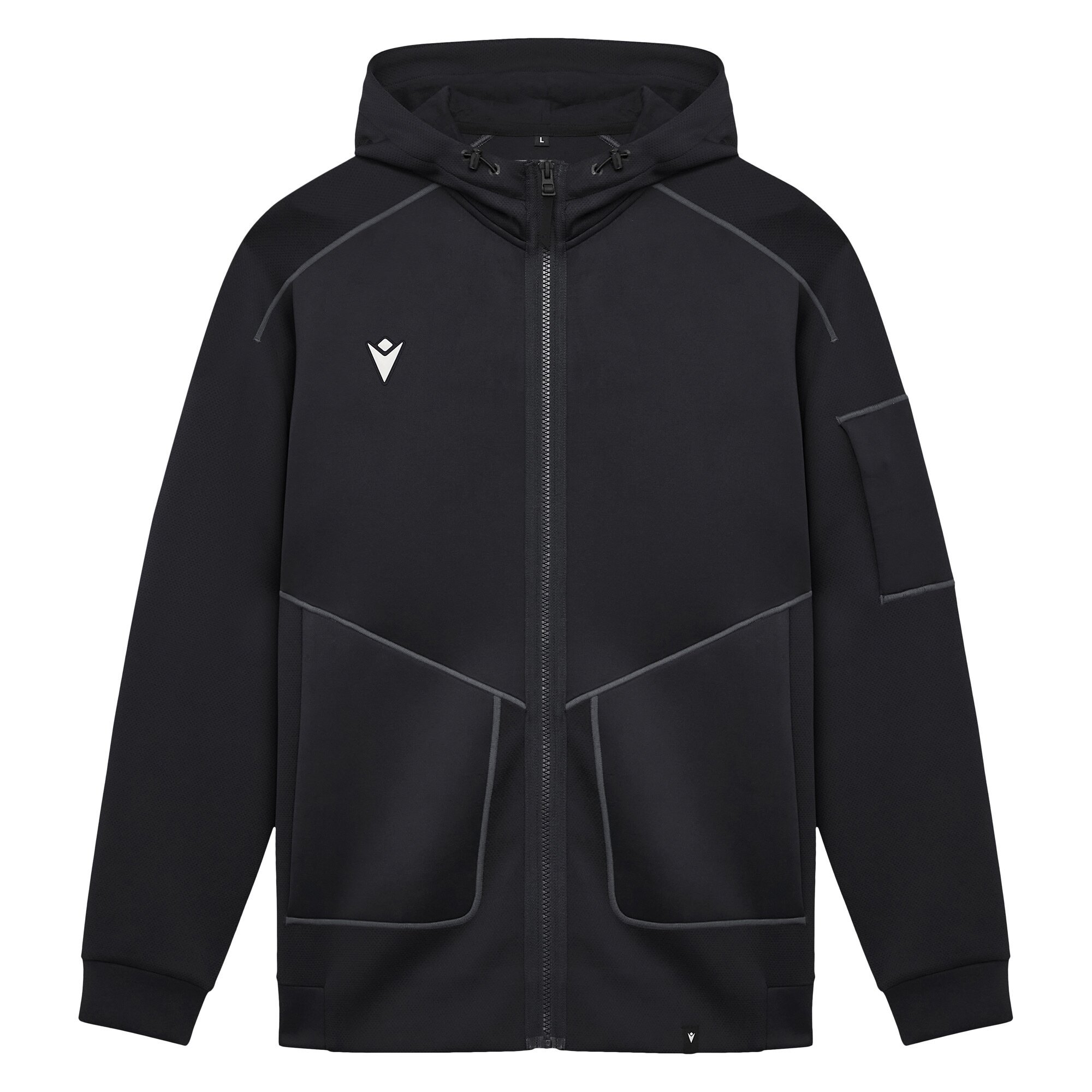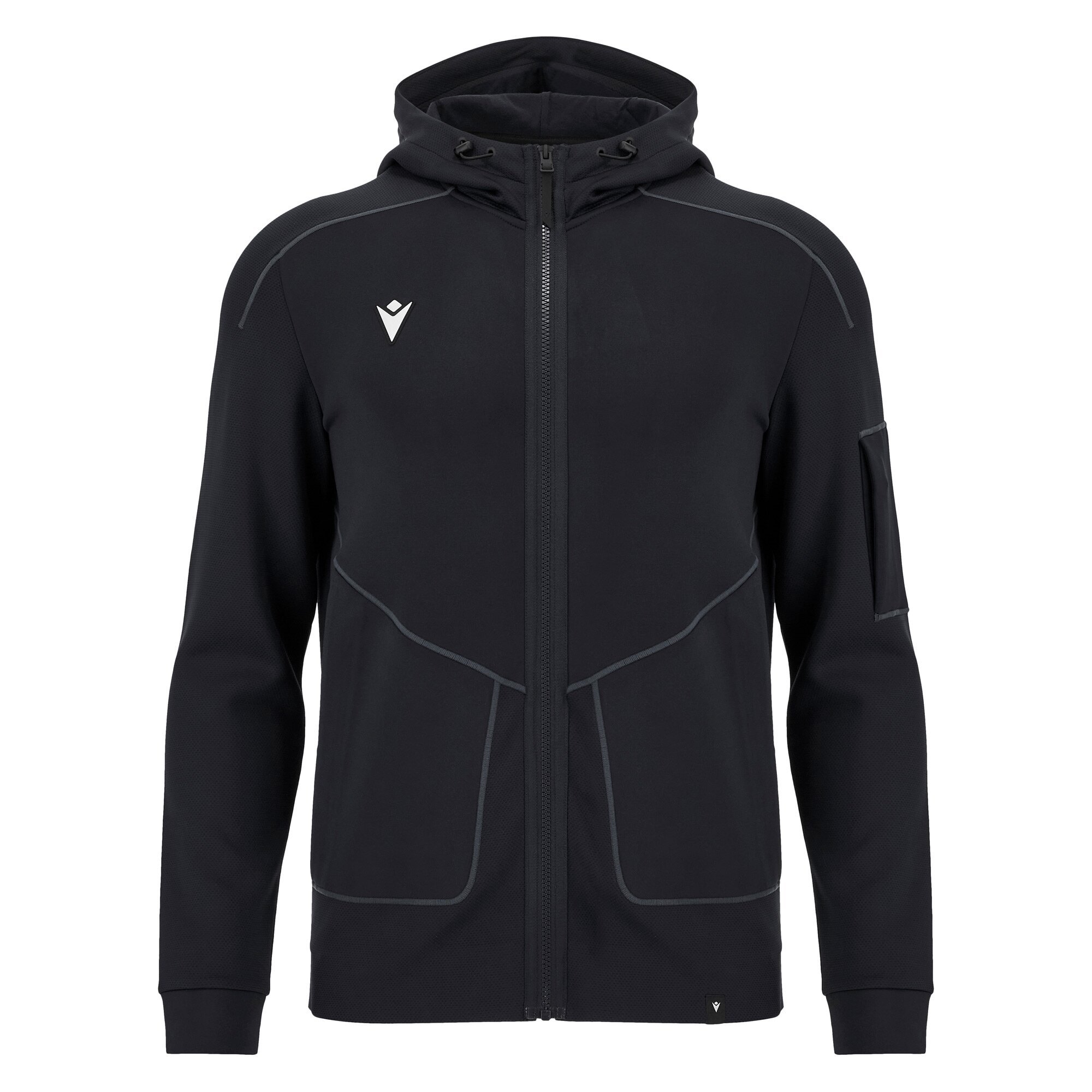 Den varmeforseglede lynlås i fuld længde sikrer holdbarhed og et moderne udtryk, mens de vendte lynlåslommer i nylon giver praktisk opbevaring og en strømlinet stil. Smarte detaljer som det hævede Macron Hero logo i 3D-gummi og tone-i-tone dækkede syninger tilføjer karakter og kvalitet til designet.