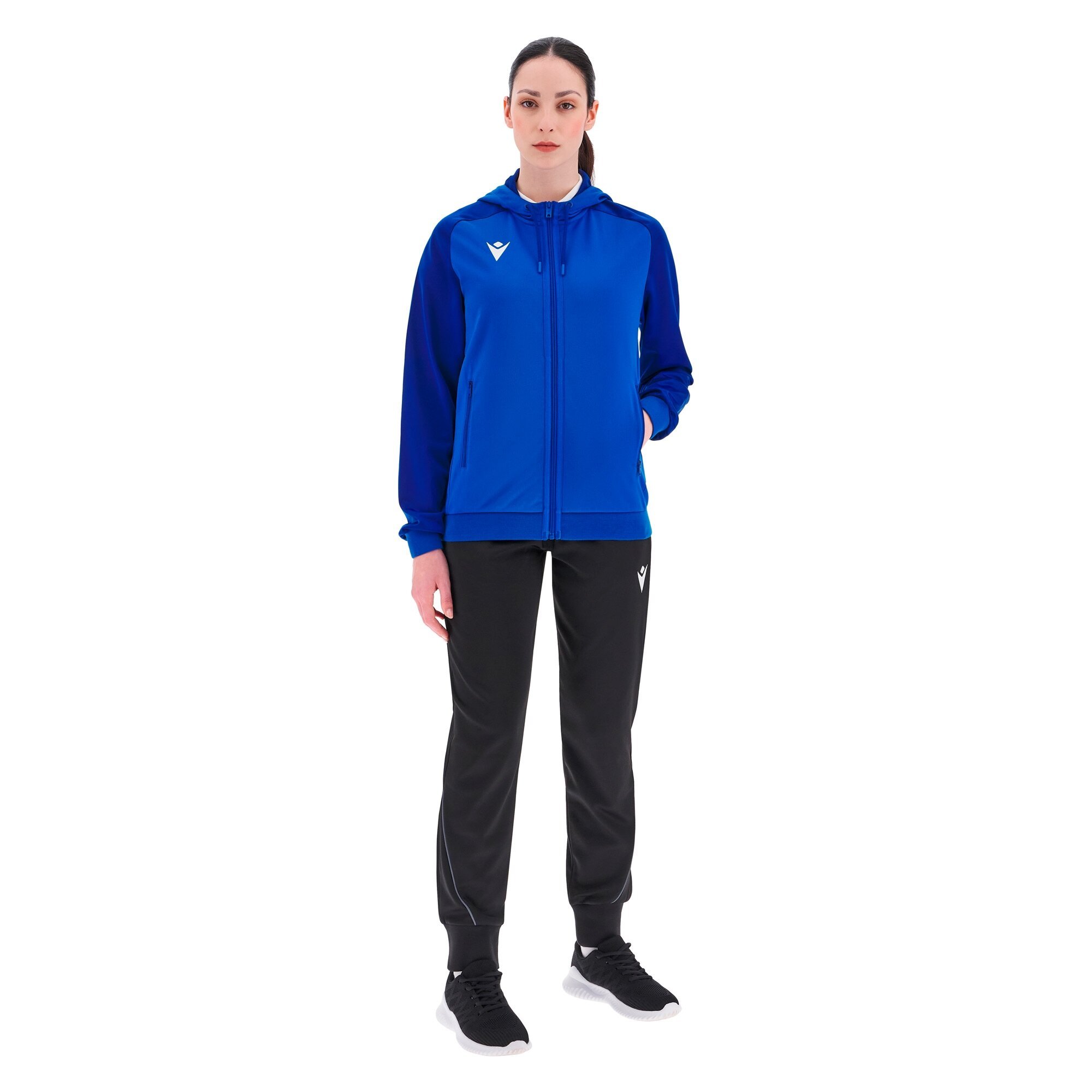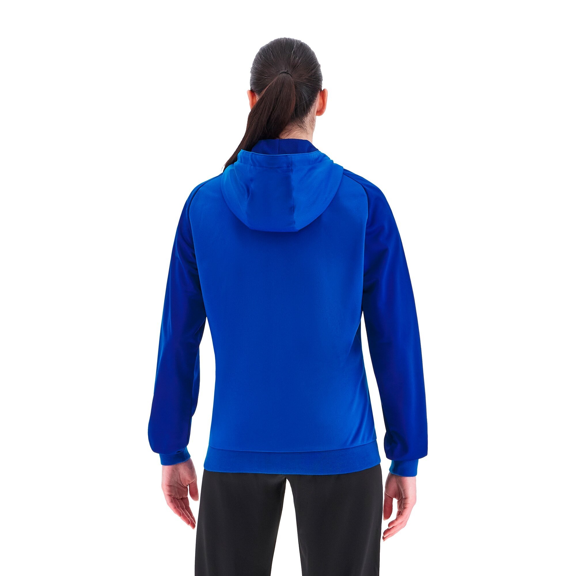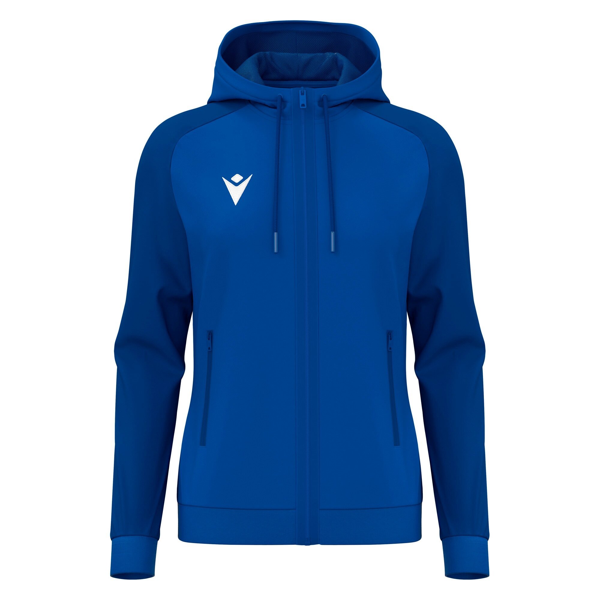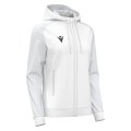 Women's full zip sweatshirt made of Poly Dry fabric for the main body and Poly Fleece for the sleeves, ensuring optimal comfort and protection. Features a front nylon zipper with a practical metal puller and visible tape, along with two comfortable side pockets with zippers. The hood is lined with mesh and equipped with a tone-on-tone drawstring. The cuffs and hem are made of ribbed knit. Available in various colors.